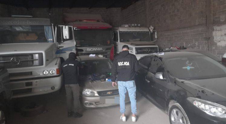 - Además, se concretaron dos allanamientos en la provincia de Jujuy donde se procedió al secuestro de 13 vehículos entre camiones, camionetas y automóviles de alta gama, armas de fuego, dinero en efectivo, chalecos antibalas y otros elementos que aportan a la causa.