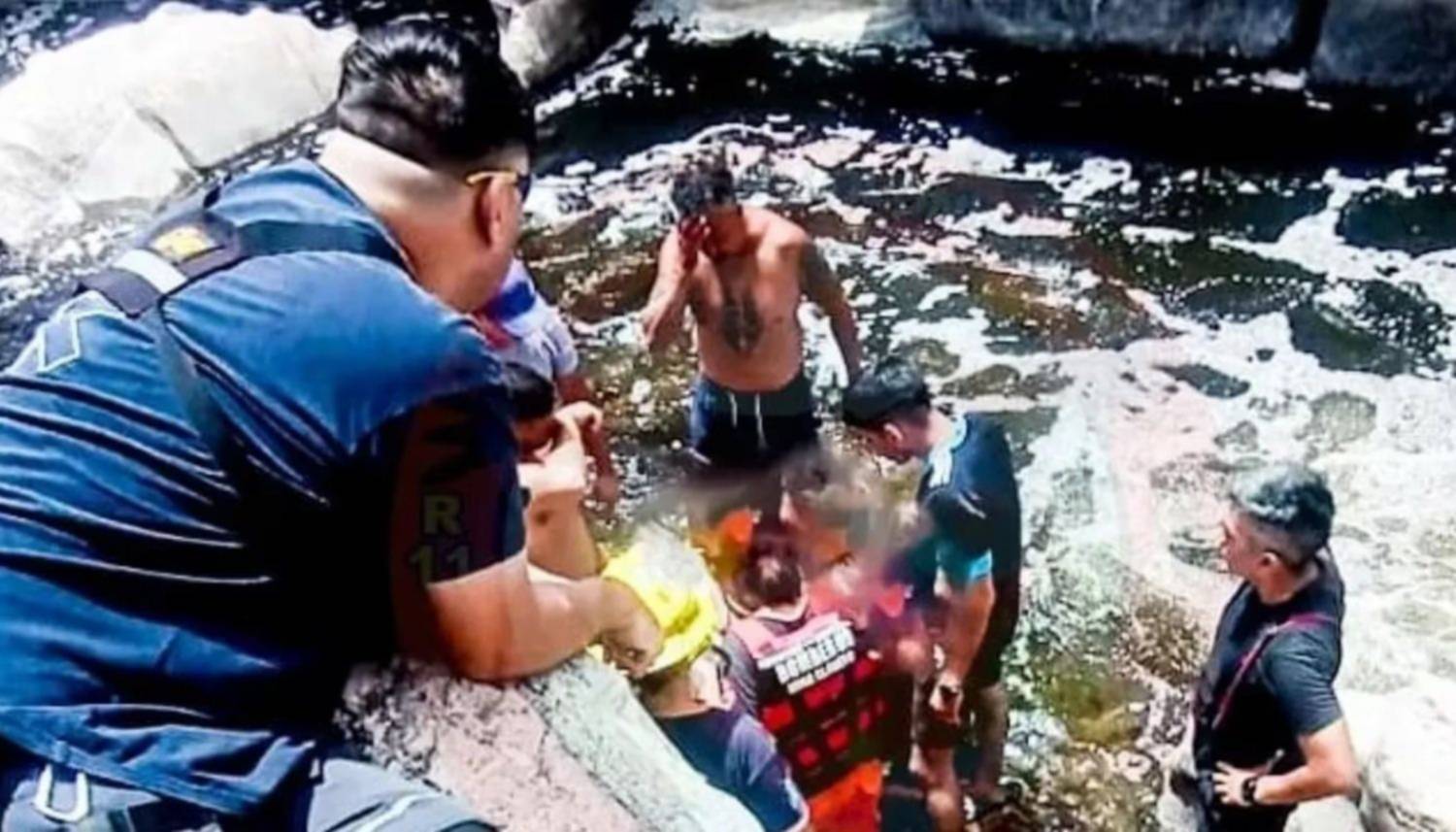 El hombre se metió al agua no pudo salir a la superficie porque quedó atrapado en una ventana natural formada por las piedras.