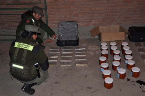 Un hombre fue detenido con 40 kilos de cocaína en su poder cuando se trasladaba en un ómnibus de pasajeros que circulaba por la ruta nacional 34, a la altura de la ciudad santafesina de Rafaela, informaron fuentes de Gendarmería Nacional. El sujeto había partido de Tucumán y había pasado por territorio santiagueño logrando sortear los controles. Las fuentes consultadas señalaron que el procedimiento fue realizado ayer al mediodía, en el kilómetro 219, por personal del Escuadrón Vial de la fuerza de seguridad donde se detectaron 40 ladrillos de cocaína, dentro de un bolso y una mochila ocultos en la bodega de un micro proveniente de Tucumán, con destino la ciudad de Buenos Aires. En ese operativo, los gendarmes detuvieron a un hombre de unos 50 años, domiciliado en Jujuy, quien habría reconocido ser ?mula?. Las fuentes señalaron que el valor de la droga rondaría los 4 millones de pesos y que estaba destinada para ser comercializada en el Gran Buenos Aires. l Publicado el 03/12/2015